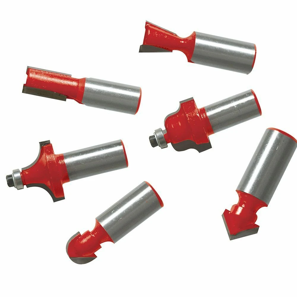 – Includes: Straight: 6 x 20mm, 12 x 20mm, 16 x 20mm; 90deg grooving: D12.7mm; Dovetail: D12.7mm; 45deg chamfer: D32mm; Bearing flush trim: 12.7 x 13mm; Rounding over: R6.3mm D22.2mm, R9.5 D28.6mm; Cove box: R6.3 D12.7mm; Cove: R6.3 D22.2mm; Roman ogee: R4 D25.5mm.