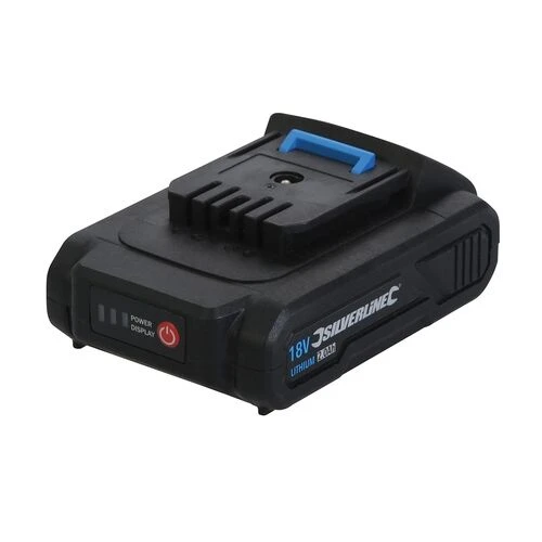 The Silverline high performance power tools battery featuring the 1-hour fast charge and built-in level indicator is compatible with the Silverline cordless 18v power tools range./>