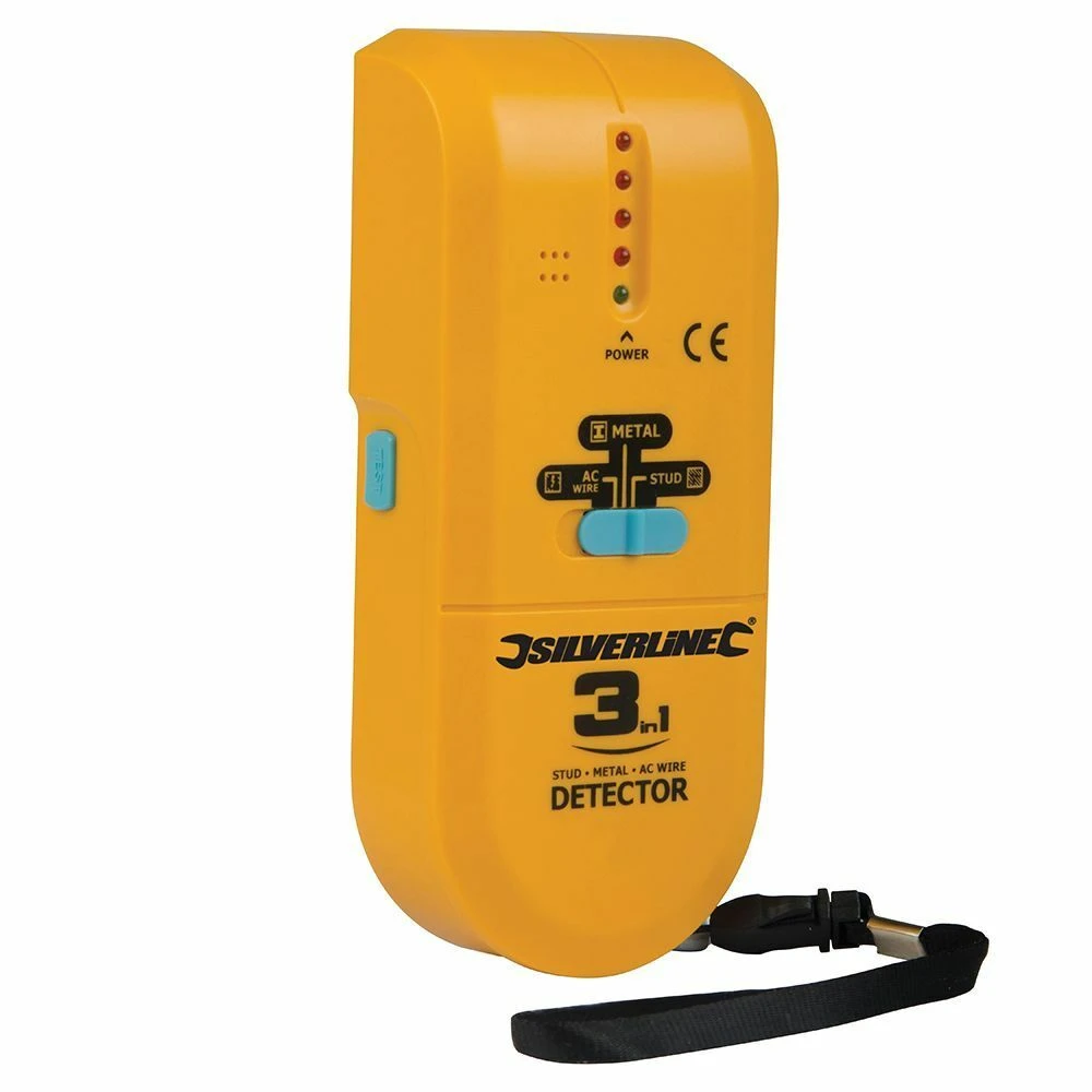– Self-calibrating 3-in-1 detector for detecting timber such as studs and ceiling joists, live AC wire and metal objects