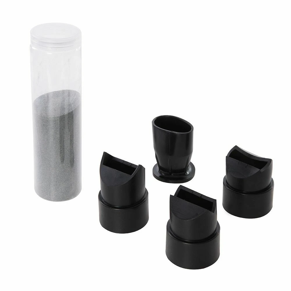 – Includes air sandblast gun, 4 x rubber nozzles, 1 x 500g tube of fine grit and collection bag for recycled grit