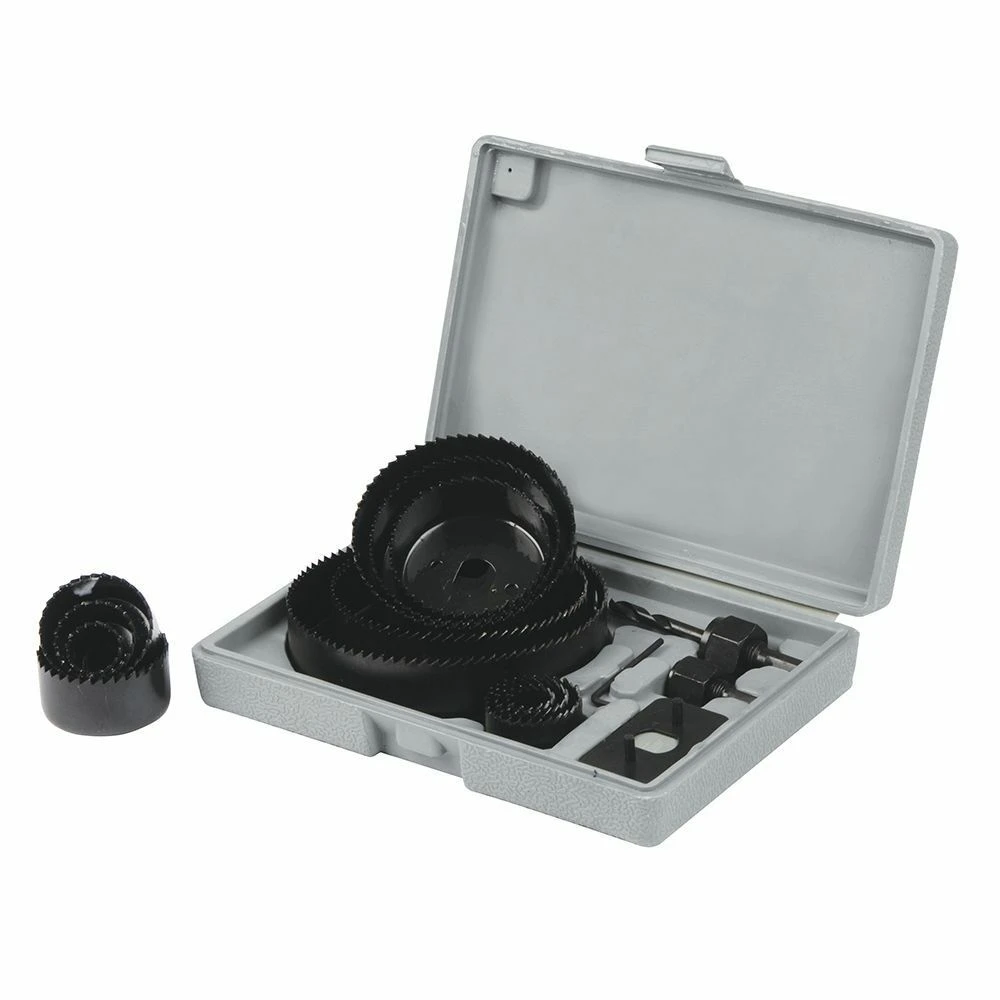 – Contains 12 holesaws 19, 22, 29, 32, 38, 44, 51, 64, 76, 89, 102 and 127mm; 6mm (1/4in) and 10mm (3/8in) arbors; Reinforcing plate and hex key
