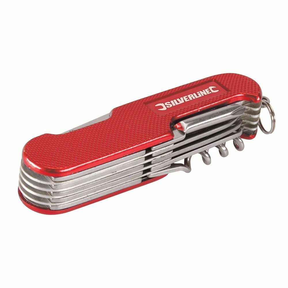– Includes knife, saw, scissor, can opener, Phillips screwdriver, corkscrew, bottle opener, metal file, small knife, fish scaler, sewing needle, leather punch and keyring.