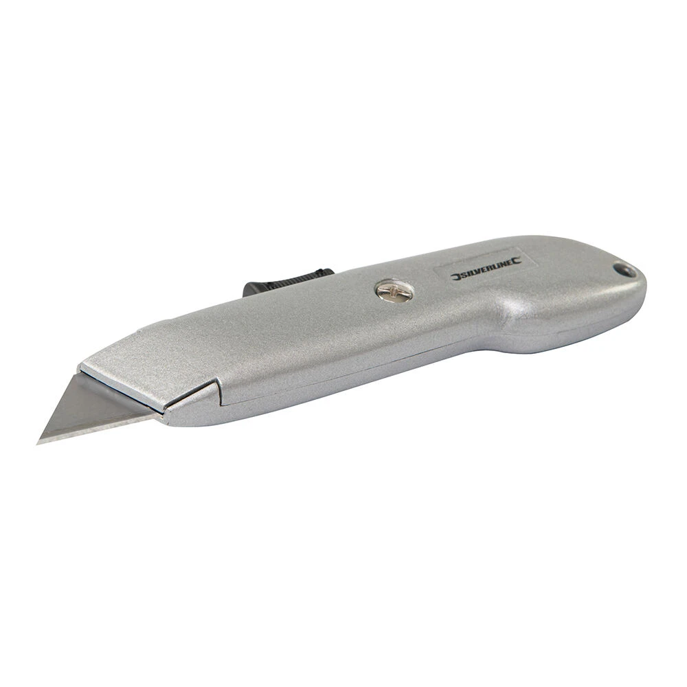 The Silverline retractable utiility knife has been designed with a strong zinc alloy body with an interlock nose for blade security.