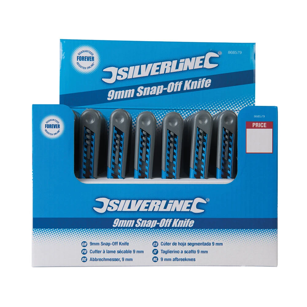 The Silverline self-locking snap-off retractable utility knife has been designed with a strong metal body and a comfortable plastic handle.