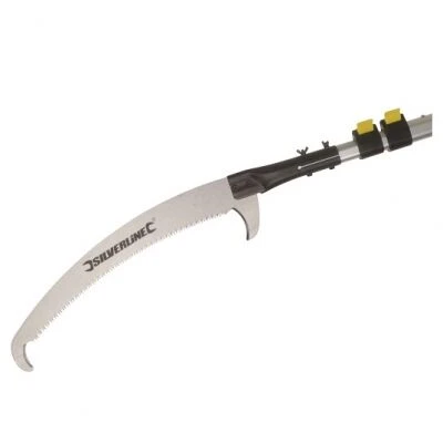 Heavy duty extendable pruning saw with tri-cut blade. The pole extends from 1.5 to 2.5m, perfect for reaching high branches. Pole sections lock in place for extra safety. The durable triple ground blade is shaped for easier branch cutting.