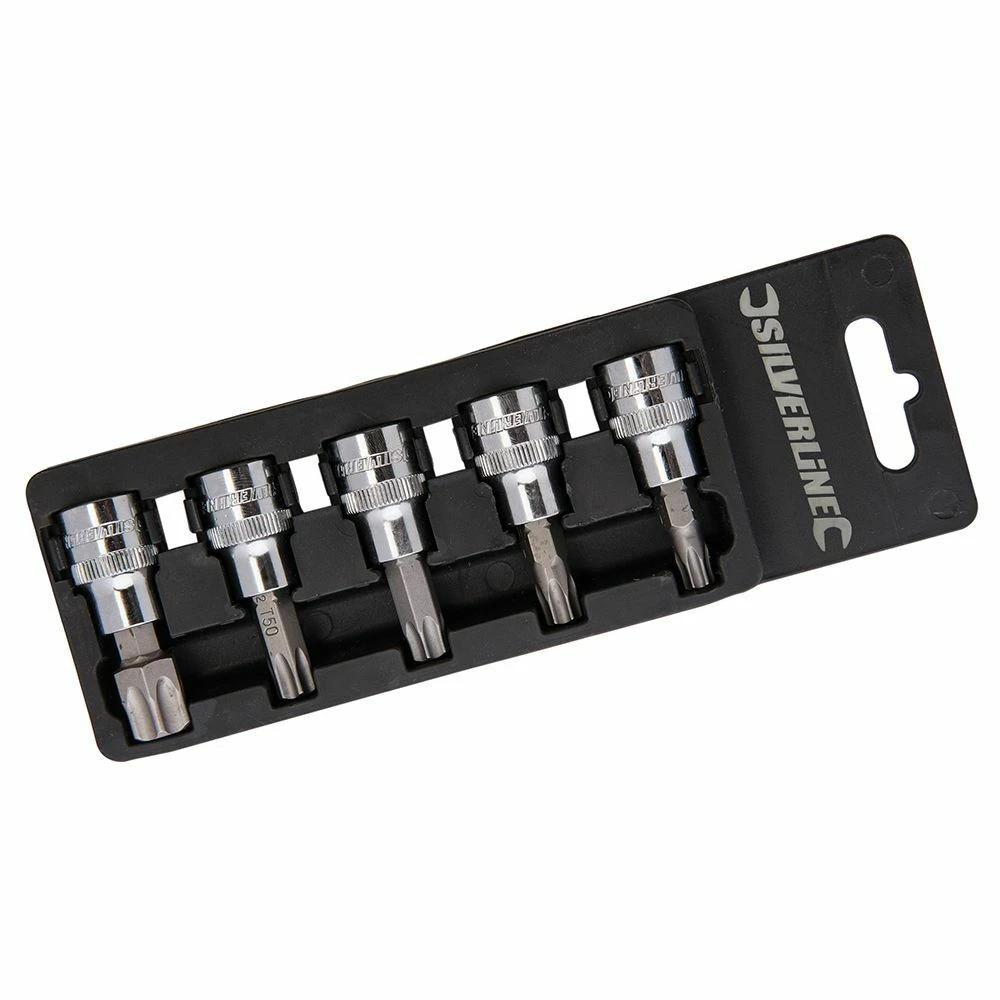 – Hardened and tempered Trx bits with satin finish, mounted in polished chrome vanadium square drive socket